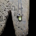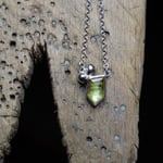 Freeform faceted pale yellow sapphire set in silver with silver cluster on 18 inch silver chain.