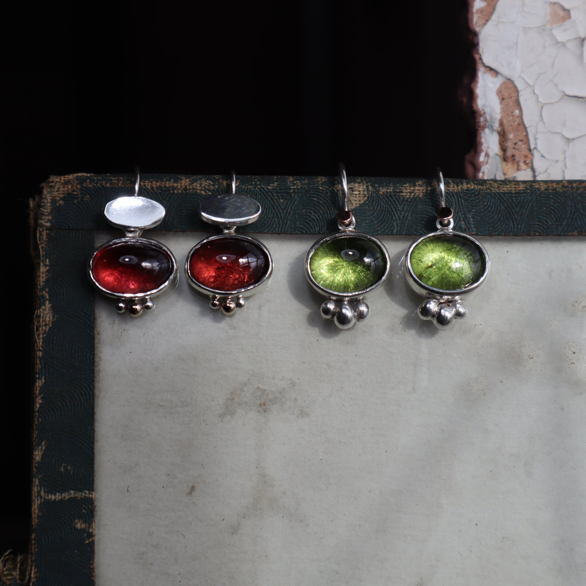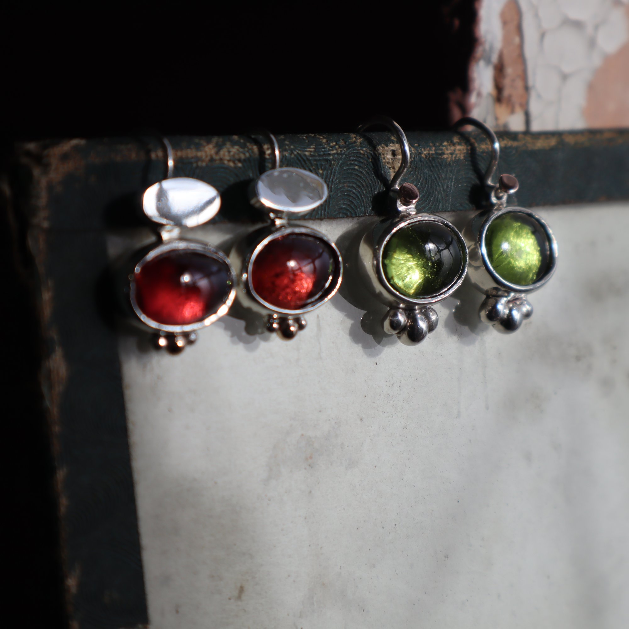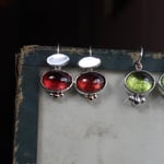 Oval garnet set in silver with silver and gold balls with silver oval hinged top.